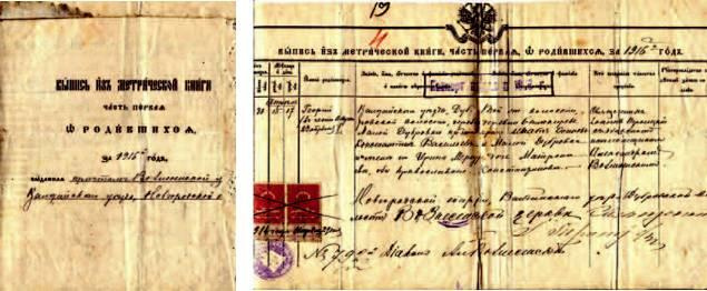 «Выпись из метрической книги. Часть первая. О родившихся за 1916 год.Выданная причтом Вознесенской церкви Валдайского уезда, Новгородской епархии