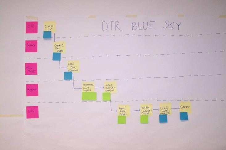 Аналитика. Очень полезное в работе направление визуализации. В качестве аналитики визуализируют карты потока создания ценности, карты процесса, диаграммы Спагетти и Ямазуми и прочие инструменты анализа. Кроме того, простая записать проблемных вопросов и ранжирование их на доске также можно отнести к визуализации аналитики.