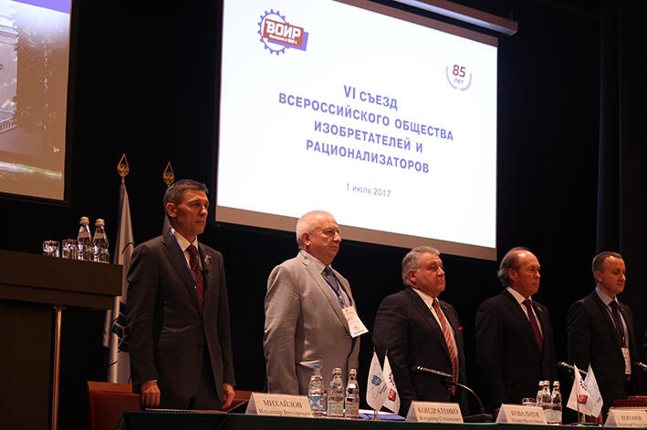 Открытие VI Съезда ВОИР в 2017 году слева направо: Михайлов В.В., Кондратенко В.С., Ковальчук М.В., Кононов В.М., Ищенко А.А.