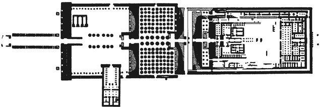 Рис. 4. Храм Амона в Луксоре. Египет, XVXIII вв. до н. э. Продольный разрез