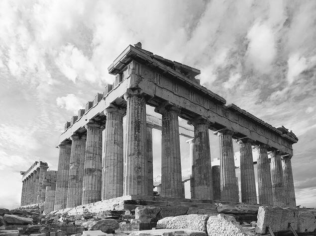 Наиболее хорошо сохранившаяся и, может быть, наиболее интересная в архитектурном отношении часть Парфенона его наружные колоннады представляет собой замечательный пример художественно разработанной стоечно-балочной конструкции. Сущность стоечно-балочной конструкции, в отличие от стены и свода, заключается в наличии отдельно стоящих вертикальных опор, пролеты между которыми перекрыты горизонтальными перекладинами, сделанными, например, из дерева или камня. Такие перекрывающие пролет перекладины называются архитравом или архитравными балками, а самая система перекрытия перекрытием архитравным, в отличие от сводчатого. Перекрытие в своде не только давит на опоры сверху вниз, но и распирает их в стороны; в стоечно-балочной конструкции балки давят на опоры только сверху вниз, а напряжение действующих в ней главных сил сводится к тяжести горизонтальной нагрузки и к противодействию ей в вертикальной опоре. Художественная переработка стоечно-балочной конструкции и состоит прежде всего в выявлении указанных двух сил, действующих в противоположных направлениях: сверху вниз и снизу вверх.