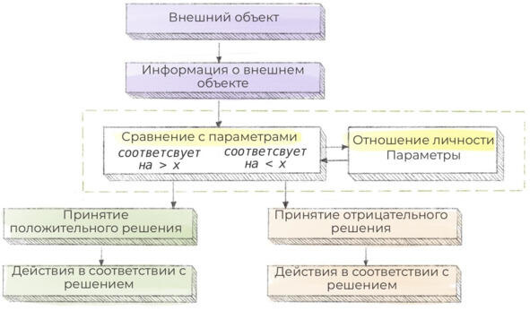 Глядя на схему, очевидно, что принятие решения напрямую зависит от того, насколько информация об объекте/субъекте соответствует представлениям человека об этом объекте/субъекте.