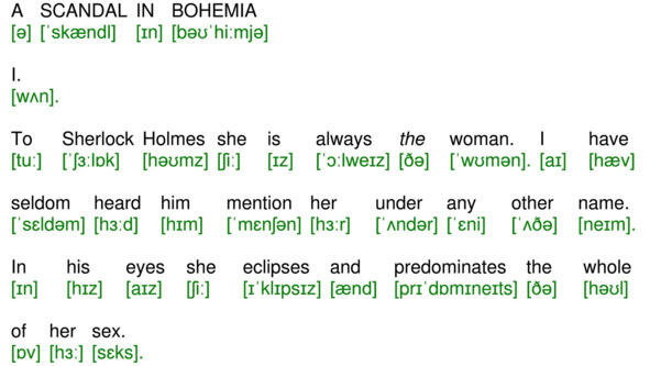 A [ə] SCANDAL [skændl] IN [ɪn] BOHEMIA [bəʊhi¦mjə]