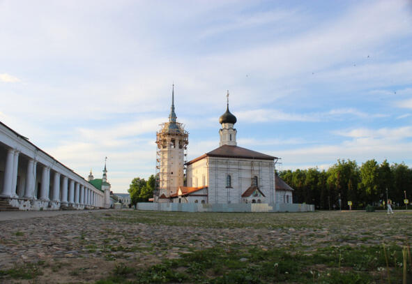 На площади расположено три храма, два рядом и один напротив торца Торговых рядов.