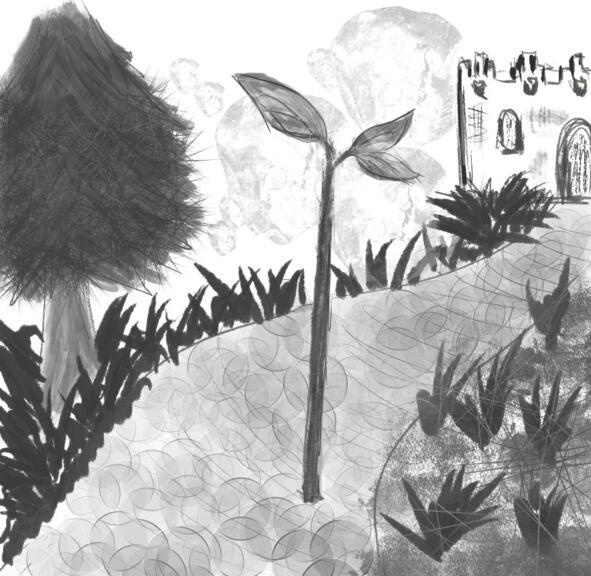 Вскочил Иван и скорее прочь из этого царства. Идёт, удивляется посох будто все больше зеленеет. Вот на его кончике даже листочки появились!
