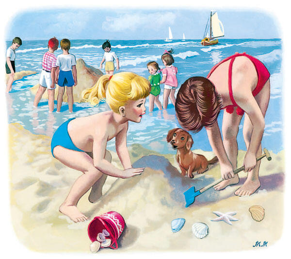 Например, делать куличи из песка. Дело пошло: вот первый кулич, вот второй, а вот уже два десятка. Настоящая пекарня!