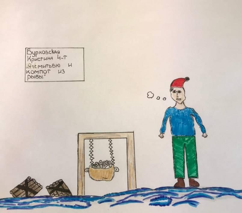 Он взял самый большой котел, развел огонь и сварил много вкусной, душистой ухи. Все ели и говорили Ячсмитьбю «спасибо».