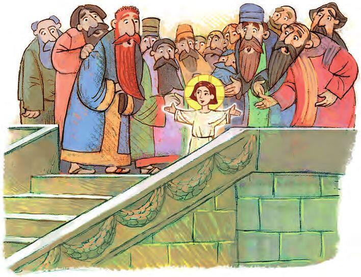 Он стоял в храме среди священников и разговаривал с ними. Все слушали Его и удивлялись. Этот Мальчик был таким муд-рым! Они ведь не знали, что Он Сын Божий.