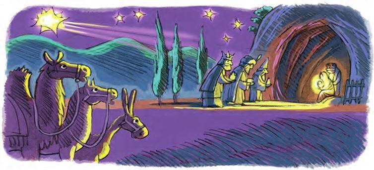 Звезда привела их к дому Иосифа и Марии. Звездочёты постучались, сняли обувь и вошли внутрь. На руках у Марии сидел маленький ребёнок. Никогда в жизни не видели они таких прекрасных младенцев. И звездочёты поняли: не зря они шли сюда так долго.