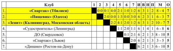 * Матч ЦДКА (Москва) «Шахтер» (Сталино) со счётом 2:1 был опротестован и переигран.