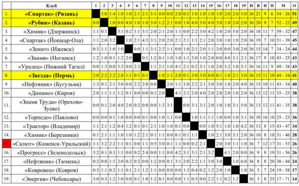 «Звезда» (Пермь) по окончанию сезона переведена во Вторую группу Класса «А» в сезоне 1966 года.