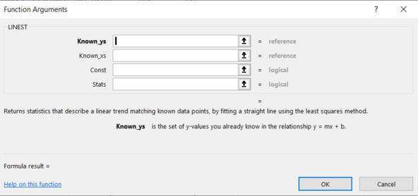 Рис. Параметры функции LINEST