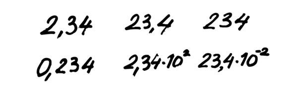 Обратим внимание, что на рисунке во всех числах имеется всего три значащих разряда. Это количество десятичных знаков в мантиссе.