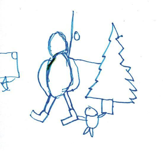 Комментируя свой первый рисунок, Денис объяснил, что больше всего ему страшно, когда он находится в темном помещении, когда должен выступать на концерте и перед экзаменом. Сначала он написал слово «тревога» под своим рисунком и указал, в каких именно ситуациях она у него проявляется. Потом он зачеркнул слова, вызывающие у него тревогу («темнота», «концерт», «экзамен»). После чего Денис зачеркнул своё изображение, объяснив это тем, что он не хочет быть таким.