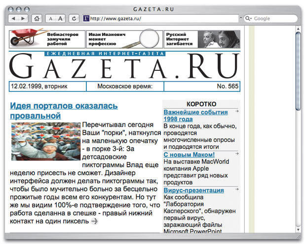 Рис. 7. Главная страница «Газеты. ш», 1999 г.
