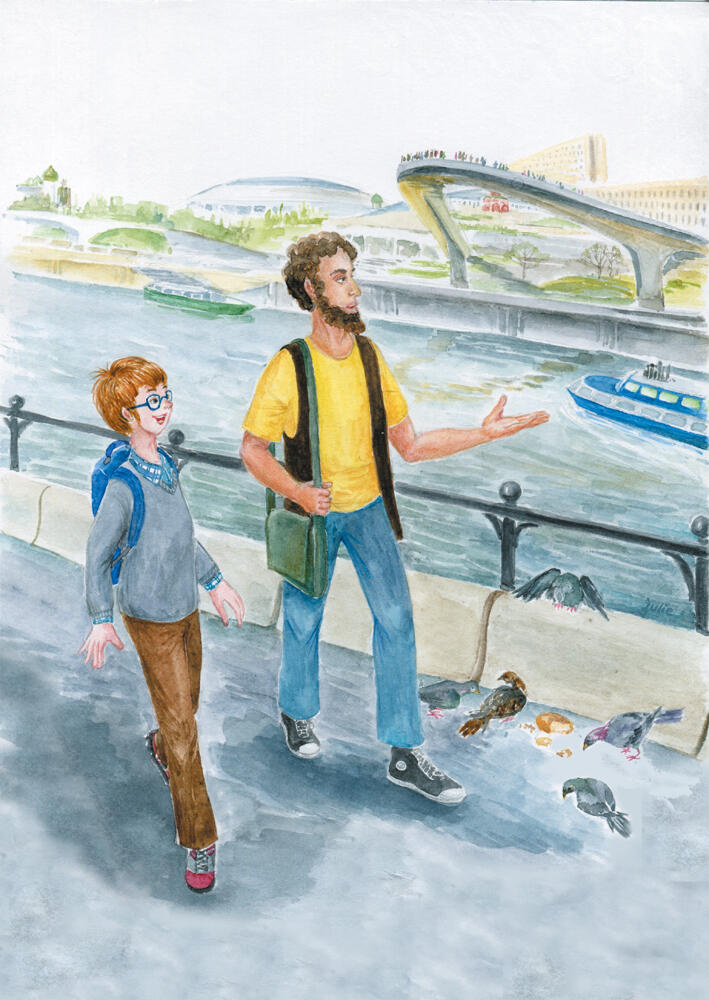 * * *Сестру Петя заранее подготовил к встрече с Дедалом, взяв с неё честное-благородное слово, что она НИКОМУ (ни подружке, ни соседке, ни в соцсетях) не расскажет, что по столице ходит человек, который жил 2500 лет назад. И всё-таки на лице Аурики был написан чистый восторг, когда на следующий день на Белорусском вокзале она энергично трясла руку Дедала. Впрочем, Дедал тоже отреагировал восторженно: