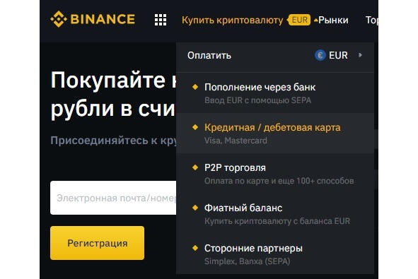 Покупка крипты с карты