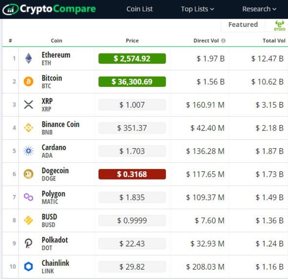 Топ-10 по версии cryptocompare, 1 июня 2021