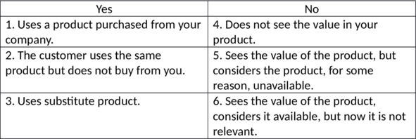 There are only 3 options for why the customer uses your product (service) or not, and whether they use it at all. These are the reasons: