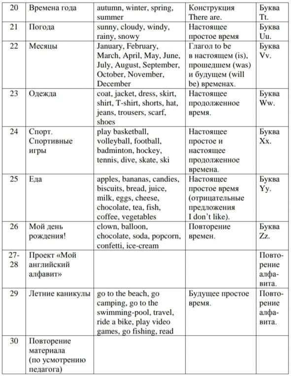 Программа рассчитана на 30 занятий (в неделю 1 занятие по 30 минут). Рекомендую начать занятия со второй недели сентября.