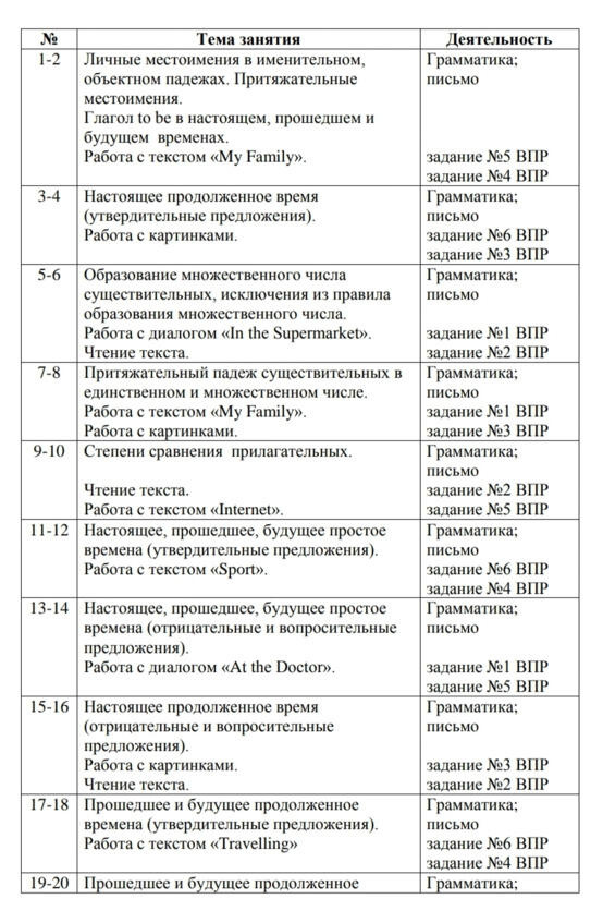 которые затрагивает ВПР по английскому языку в 7 классе: