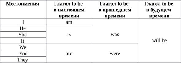 Глагол to be в настоящем, прошедшем и будущем временах.