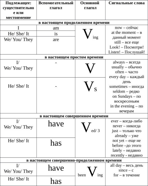 Занятия 68. Настоящие времена: Present Simple/ Present Continuous/ Present Perfect/ Present Perfect-Continuous (утвердительные предложения)