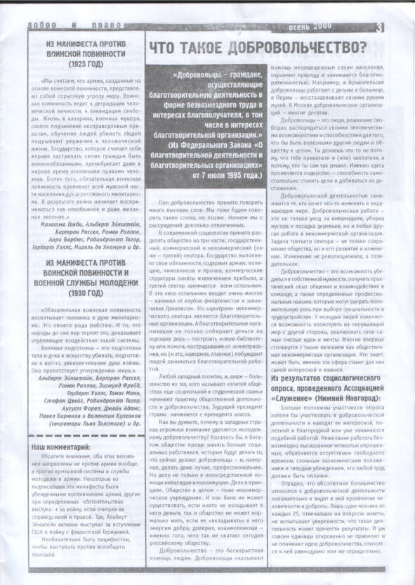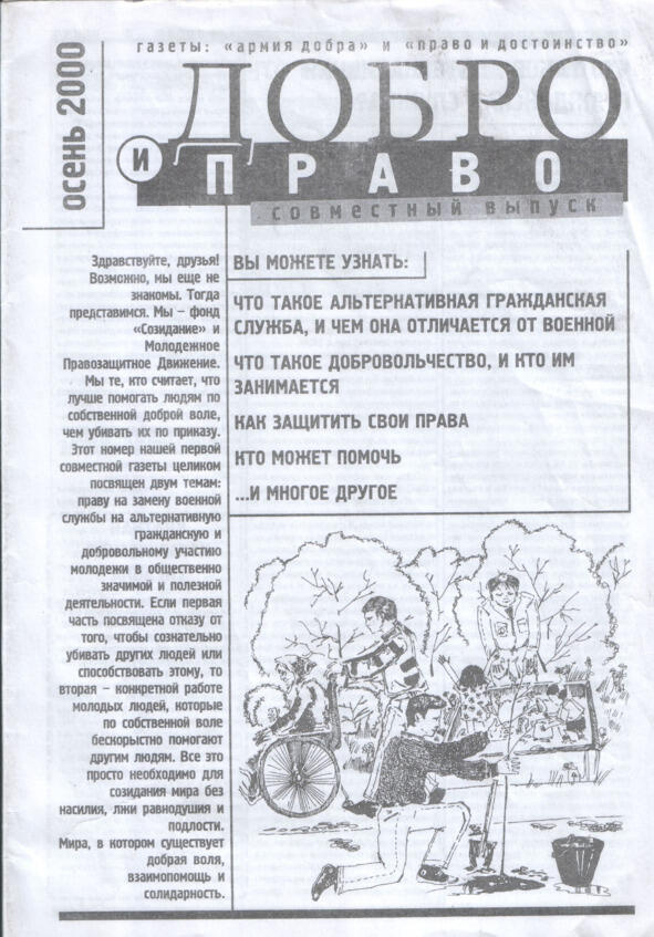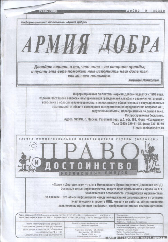 Также там были размещены ссылки на сайты таких общественных организаций, как «Право на жизнь и гражданское достоинство», «Движение против насилия», «Миротворец», «Партия конституционных демократов», «Яблоко», «Правовое общество», «Антимилитаристская радикальная ассоциация», «Созидание», «Комитет солдатских матерей», «Молодёжное правозащитное движение».