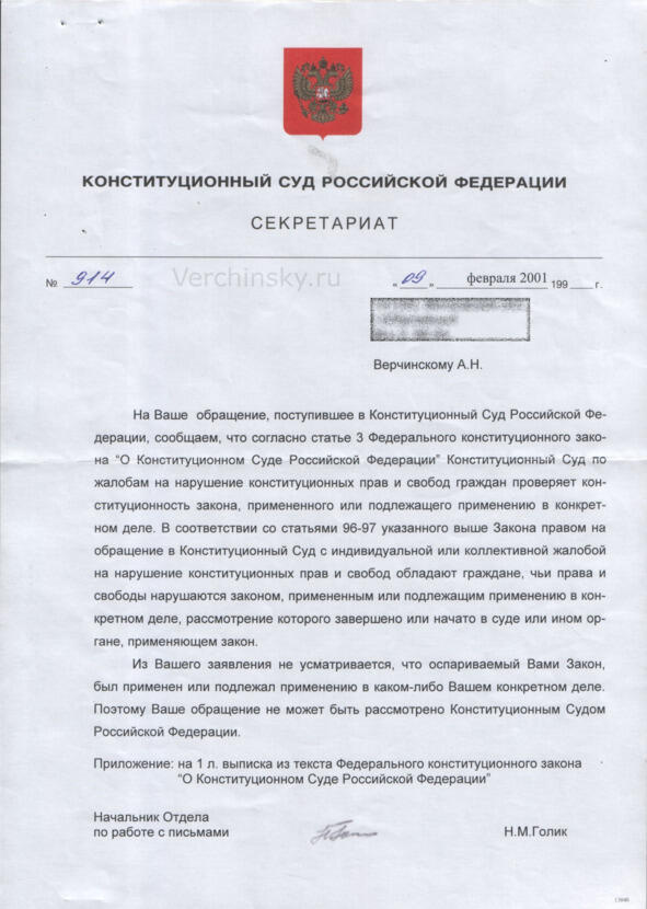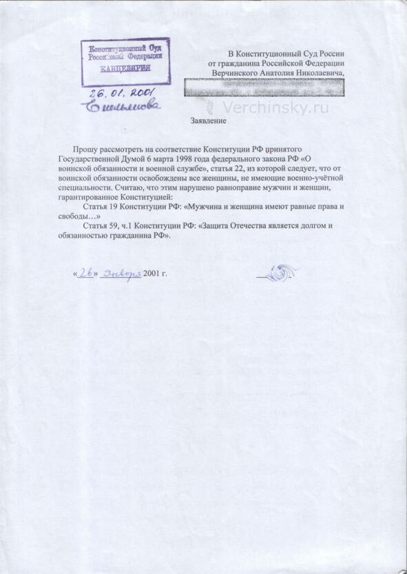 До этого, в январе 2001 г., я пытался подать соответствующую жалобу в Конституционный суд (на тот момент мне было 24 года).