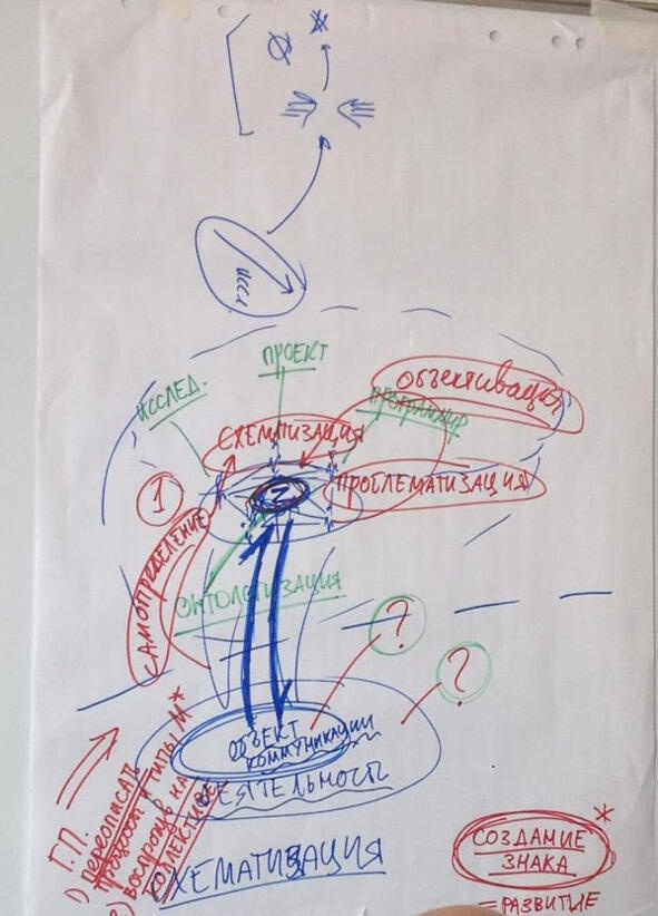 Мрдуляш П. С организационной точки зрения, если запустить процесс коммуникации сопровождаемой схематизацией, то все остальное обсуждается в рефлексии по отношению к нему. То есть базовый процесс это коммуникация опосредованная схематизацией.
