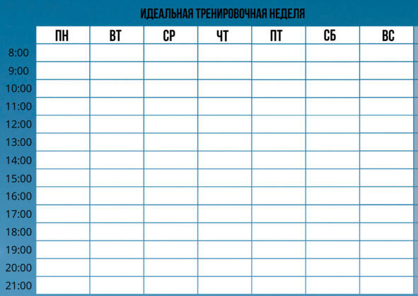 Поэтому вноси данные тренировки в свой еженедельный график на регулярной основе.