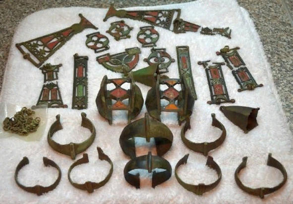 А это предметы Киевской археологической культуры. Это 3 век н. э. Можно предполагать, что это тоже первые славяне (поляне?). И мы видим тут уже прямо-таки замечательное прикладное искусство: застежки-фибулы, браслеты Что, конечно, свидетельствует о достаточно высоком развитии и производства, и духовной жизни.