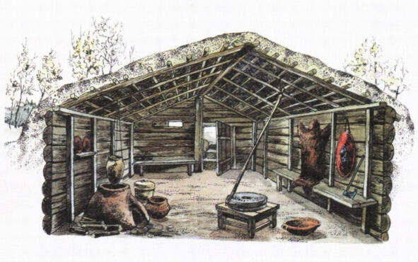 Наиболее распространенное жилище славян полуземлянка. Домик или хатка из бревен наполовину утапливалась в землю. Снаружи такие дома были почти незаметны. При нападении врагов жители таких домиков могли легко перебраться в другое место. Ценности: монеты, драгоценные камни зарывали в землю. Эти клады раскапывают сейчас археологи.