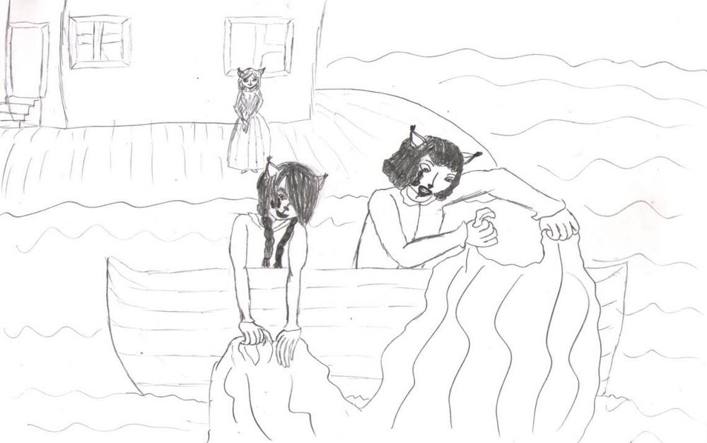 Когда хозяйка зажгла свечи, Вася рассмотрел обстановку в домике. Вместо стола большое бревно. На нем самовар и чашки. Вместо стульев бревна поменьше. На окнах вместо занавесок паутина. В углу лежанка с толстым слоем соломы. На ней самый настоящий лук с туго натянутой тетивой. Теперь мальчуган рассмотрел и саму хозяйку юную разбойницу. Именно так он окрестил пятнистую рысь, одетую Робином Гудом, с торчащими из колчана за спиной стрелами. На вид девочка была ровесницей Васи, чуть повыше его ростом, но очень уж худенькая кожа да кости.