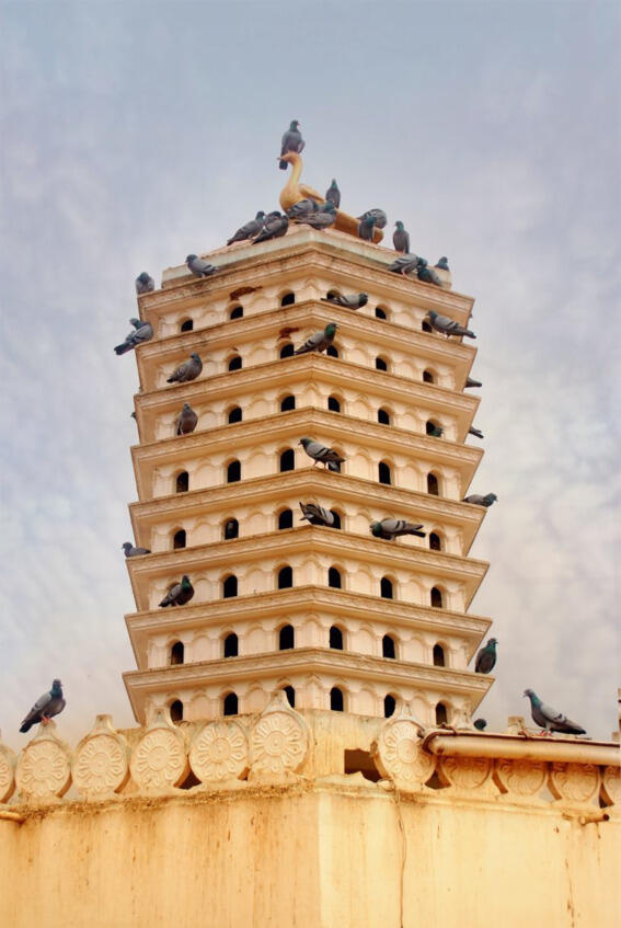 Всем известно особенное отношение индийцев к животным. Многие животные в индуизме считаются священными, их стараются не обижать и не употреблять в пищу. И голуби здесь тоже не были исключением. В некоторых индийских деревнях и общинах (особенно принадлежащих к кастам кшатриев и брахманов) строились так называемые чабутро (или чабутаро). Чабутро это голубятня, имеющая башенную структуру, вверху которой располагалась восьми- или пятиугольная своего рода беседка. Название, очевидно, произошло от слова «кабутар», что в переводе с языка гуджарати означает «голубь». Впрочем, архитектурное разнообразие таких построек весьма велико. Такие голубятни строились в центре или при въезде в деревню. Окружающее башню пространство служило местом сбора жителей и игровой площадкой для детей. Люди отдыхали, общались и кормили голубей. Никакой иной цели такие голубятни не имели. На фото ниже представлена одна из нетипичных чабутро.