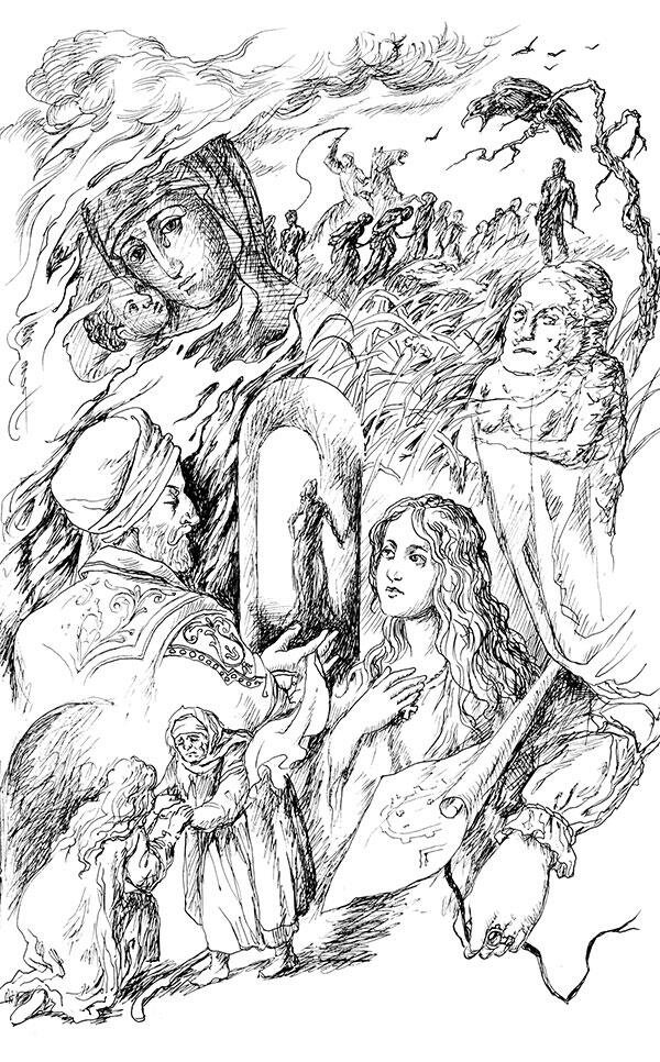 Падав дощ на землю християнську, що стогнала від Джихаду священної війни, яку вів Сулейман. Він їхав розкислою дорогою, оточений вартою, а за стіною дощу гігантським змієм тяглося за ним величезне військо, про розміри якого можна було здогадатися із шуму, що супроводжував його, подібного до морського прибою: було тут і хропіння коней, і скрип коліс, і крики начальників, і тупіт ніг, і дихання сотень тисяч людей.