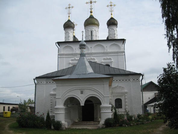 Первой возвели каменную церковь Собор Сретения Владимирской иконы Божьей Матери. Главная его достопримечательность купола, выполненные из глазурованного лемеха с золотым отливом. Нигде больше в центральной России не найти подобной красоты. Ближайшим аналогом можно признать выполненную по сходной технологии облицовку куполов мавзолея Гур-Эмир в Самарканде.