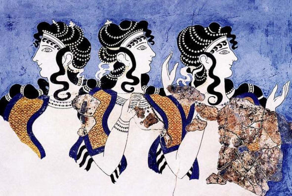 Крит ткм временем богател и хорошел. Из греческих мифов нам известен богатый и в то же время культурный царь Крита Минос. Царь любил роскошь и построил уникальный Кносский дворец, фрески которого с дельфинами и женщинами с оригинальными и прическами удивляют и поражают.