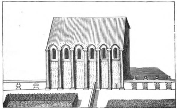Похожий вид на королевский дворец в Сен-Жермен-ан-Лей, сделанный М. Азиниусом (M.Asinius) по рисунку А. Франчини, 1614 год, показывает теннисный корт (рис.8), странное нормандское здание, очень короткое по пропорциям и с высокой скатной крышей. Именно из этого дворца, что Людовик XIII написал письмо кардиналу де Ришелье, датированное 4 мая, 1637 г.84, в котором он говорит, что его paumier не может получить заработной платы или компенсации расходов: «Бедный ла Ланд (Ia Lande), которого я показывал Вам в саду еще не получил никакой выгоды ни от своего путешествия [переезда] ни от того, что я ему заплатил». 11 декабря 1640 года он снова пишет из дворца85: « Я не разговаривал с маркизoм Сен Маром (Cinq-Mars) [конюший короля, приставленный к нему кардиналом Ришелье] с последних пяти вечера, который, не сказал мне ни единого слова, кроме тех, которое были сказаны во время игры в la paume, а затем расстался с ним как можно скорее, он настолько высокомерен, что уже нет возможности мучиться»