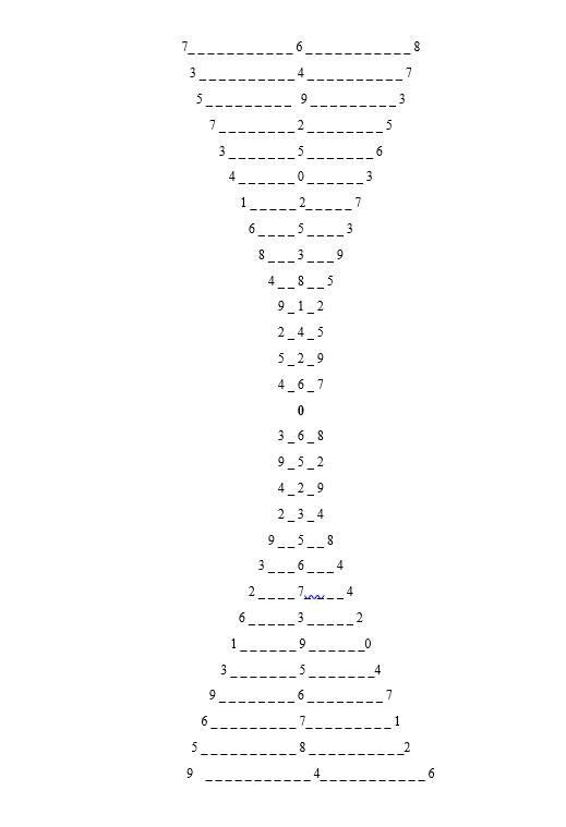Медленно опускайте взгляд вниз строго по центральной линии. Стремитесь прочитать цифры, находящиеся по сторонам, не переводя взгляда ни влево, ни вправо. Проделайте то же, поднимая взгляд вверх.