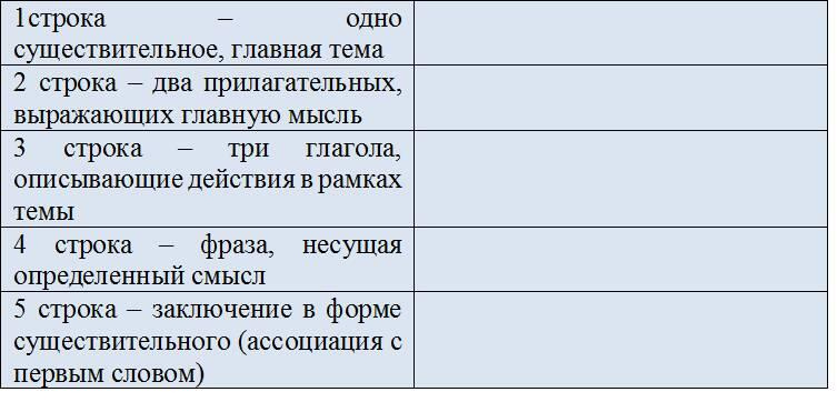 Синквейн это специфическое стихотворение, состоящее из пяти строк, в которых обобщена информация по изученной теме. Например: