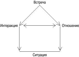Встреча проявляется в двух взаимосвязанных феноменах интеракции и отношения. Они являются составляющими любой ситуации (рисунок 3).