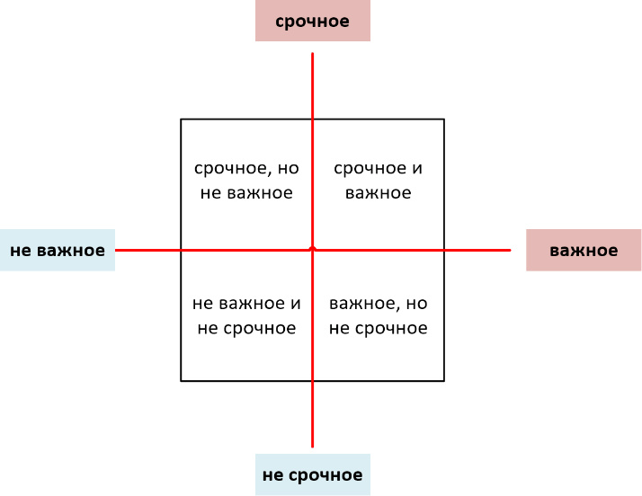 Для этого много чего придумано, но на мой взгляд самый удачный инструмент, это так называемая матрица Эйзенхауэра, но что-то мне подсказывает, это такое наименование всего лишь маркетинговая легенда ряда частных консультантов, потому как Рене Декарт, придумавший 2D графику жил чуточку раньше POTUS 34.