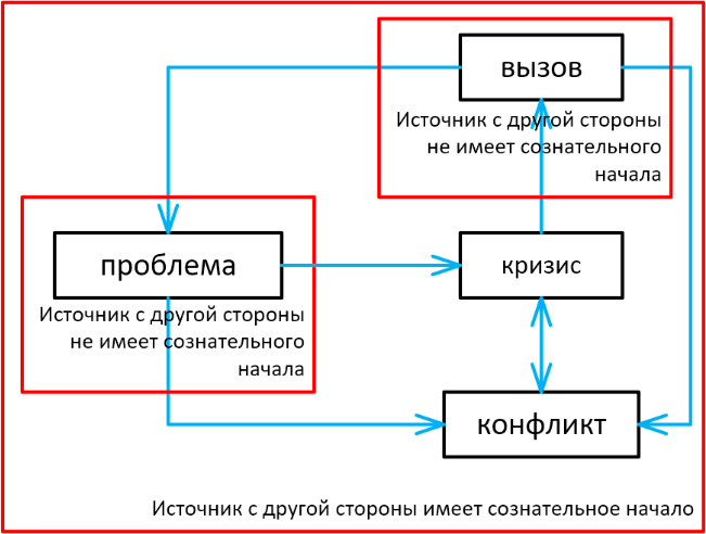 По уровню опасности классы сложности можно выстроить в следующем порядке: вызов ˃ проблема ˃ конфликт ˃ кризис. Теперь подробнее о каждом классе.