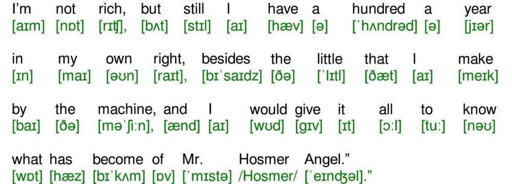 Im not rich, but still I have a hundred a year in my own right, besides the little that I make by the machine, and I would give it all to know what has become of Mr. Hosmer Angel.