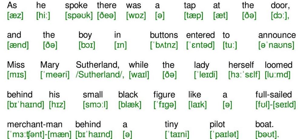 As he spoke there was a tap at the door, and the boy in buttons entered to announce Miss Mary Sutherland, while the lady herself loomed behind his small black figure like a full-sailed merchant-man behind a tiny pilot boat.