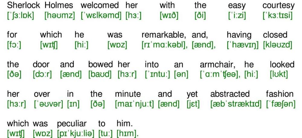 Sherlock Holmes welcomed her with the easy courtesy for which he was remarkable, and, having closed the door and bowed her into an armchair, he looked her over in the minute and yet abstracted fashion which was peculiar to him.