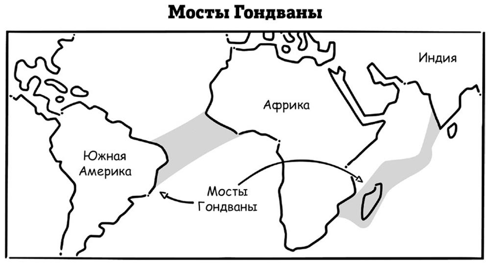 В те времена господствовала теория о том, что когда-то в прошлом между континентами были узкие земляные мосты (называемые мостами Гондваны), позволявшие животным перемещаться между ними. В поддержку их существования никогда не было никаких конкретных свидетельств. Вместо того чтобы изучить теорию Вегенера (которая, конечно, была не идеальной, но многообещающей), геологи решили придерживаться своей неправильной теории о земляных мостах, пока свидетельств в поддержку континентального дрейфа не стало так много, что парадигма сменилась.