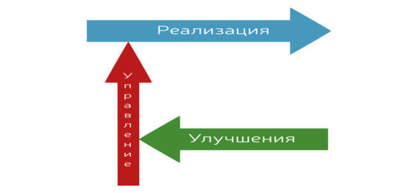 Поток Улучшений это рефлексивный поток решений, влияющих на качество Потока Управления. Это управленческие решения, направленные на улучшения самого процесса принятия решений о целях в Потоке Реализации. Только находясь в Потоке Улучшений, мы анализируем произошедшие события и можем оценить качество принятых решений, провести работу над ошибками и сделать последующие решения более качественными и приносящими лучший результат.
