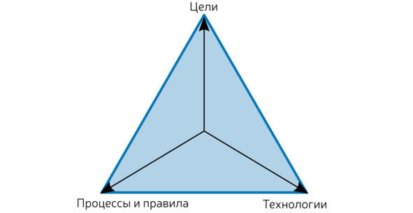 Когда составляющая Целей «уходит в отрыв» от Технологий и Процессов, то у рядовых специалистов возникает нервная обстановка из-за постоянного неуспевания за целями.